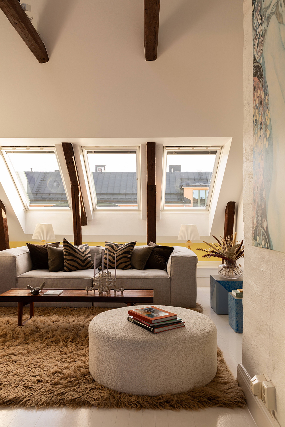 Красочные акценты в замечательном интерьере этого просторного лофта на последнем этаже в одном из жилых домов центра Стокгольма создают приятное жизнерадостное настроение. А если учесть ещё и прекрасную террасу с видом на крыши города, то мысли об известной детской сказке о Карлсоне возникают сами собой. Дизайнеры также смогли спроектировать небольшое мансардное помещение, на котором разместился полноценный домашний офис — удобное и практичное решение. Великолепное городское жильё!