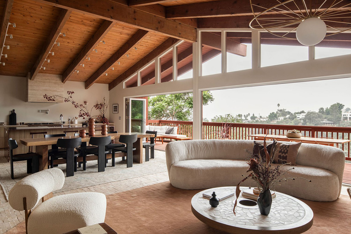 Этот дом в Калифорнии довольно нетипичный для здешней застройки, в которой исторически преобладает архитектура в колониальном испанском стиле. И дело тут не только в красном (или кирпичном) оттенке деревянного фасада — его необычный внешний облик с просторными террасами на каждом этаже, бережно восстановленный во время недавней реконструкции, выделает его на фоне остальных домов в округе. Что касается интерьеров, то здесь всё более предсказуемо, но не менее эффектно — это уютный современный дизайн с модными линиями и натуральными материалами. В сочетании с уникальной архитектурой смотрится просто здорово!
