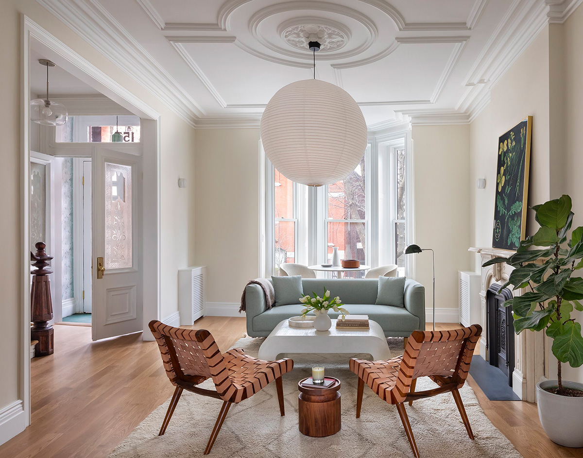 Этот дом в Бруклине является одним из знаменитых таунхаусов из красного кирпича, которые мы так часто видим в фильмах про Нью-Йорк. Несмотря на историческую значимость и элегантные детали, внутреннее пространство дома имеет ряд ограничений по площади и планировке. Именно поэтому дизайнеры BAAO постарались максимально освободить пространство от чрезмерного декора и усилить естественный свет. Замечательные декоративные элементы, такие как лепнина и оригинальный камин, стали основными и обновлённом дизайне, в то время как прохладные оттенки придали интерьерам свежих ноток. Enjoy!
