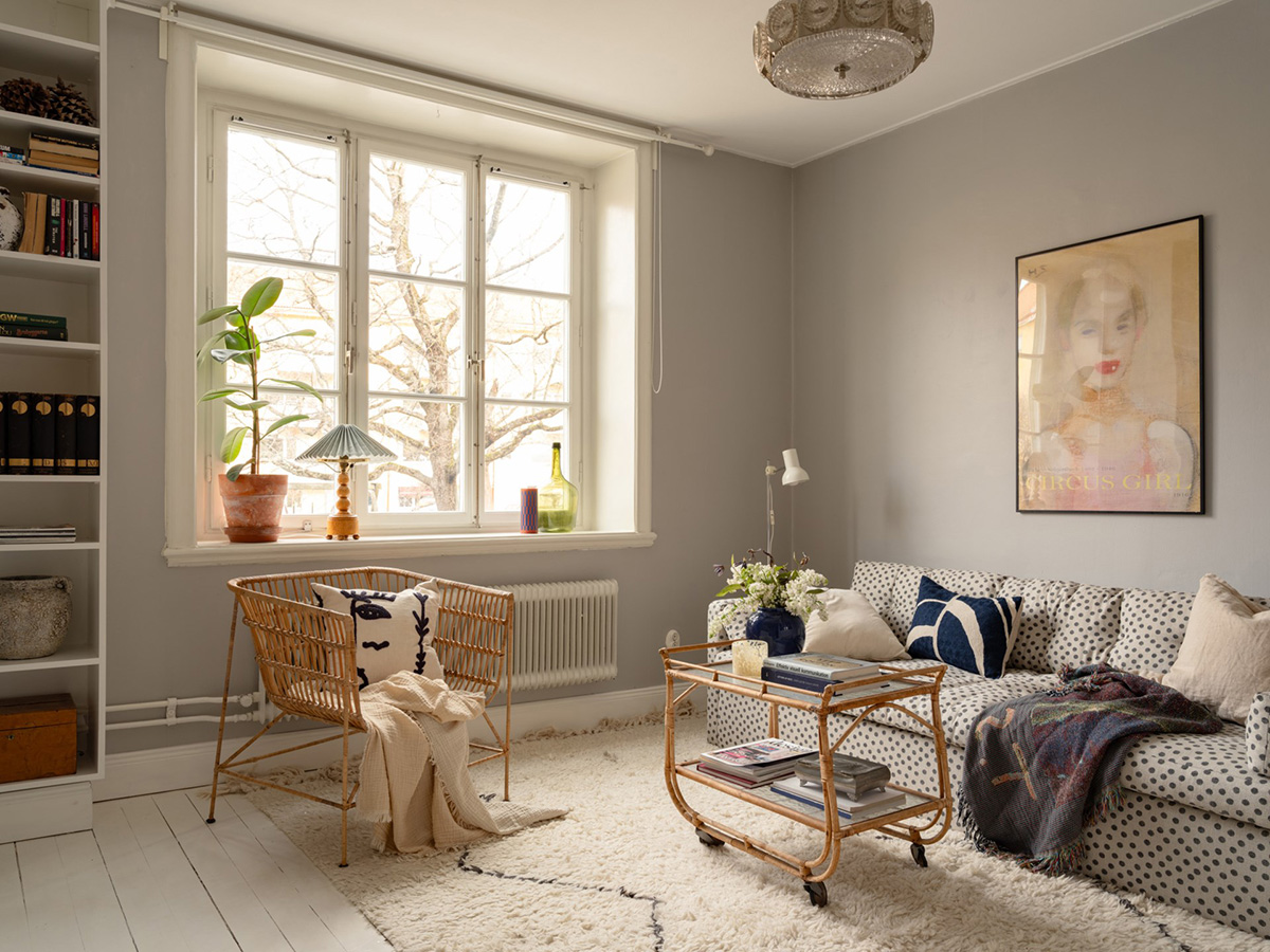Эта компактная квартира на окраине Стокгольма — лёгкий и нежный интерьер с изюминкой для одинокого проживания. Главный элемент декора здесь — пятнистый диван в гостиной, который сразу создаёт прекрасное настроение. Ну а мягкие пастельные оттенки серого и светлый текстиль его отлично поддерживают, обеспечивая расслабляющую и располагающую обстановку. Спальное место было выделено из основной комнаты с помощью дополнительной стены с окном — интерьер получился совсем крошечный, зато теперь в квартире есть вот такой приватный уголок. Enjoy!