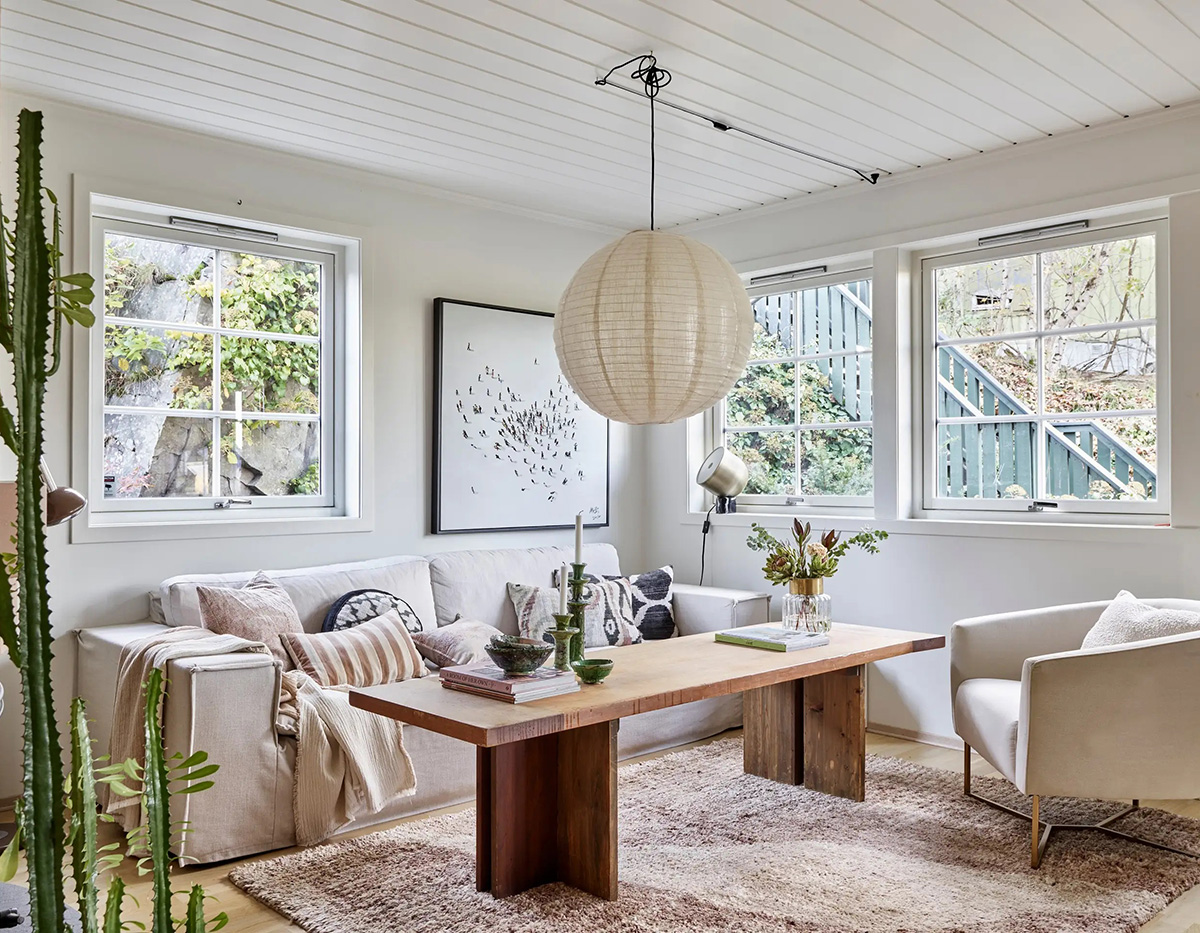 Этот небольшой шведский домик выглядит как типичный скандинавский коттедж начала 20 века, но на самом деле это новострой, удачная стилизация под старину. Особенность его внутренних пространств — комнаты довольно маленькие, а потолки невысокие. Зато в нём много света и привычного очарования скандинавского кантри. А ещё довольно необычные виды — рядом с домом находится небольшой скалистый холм.