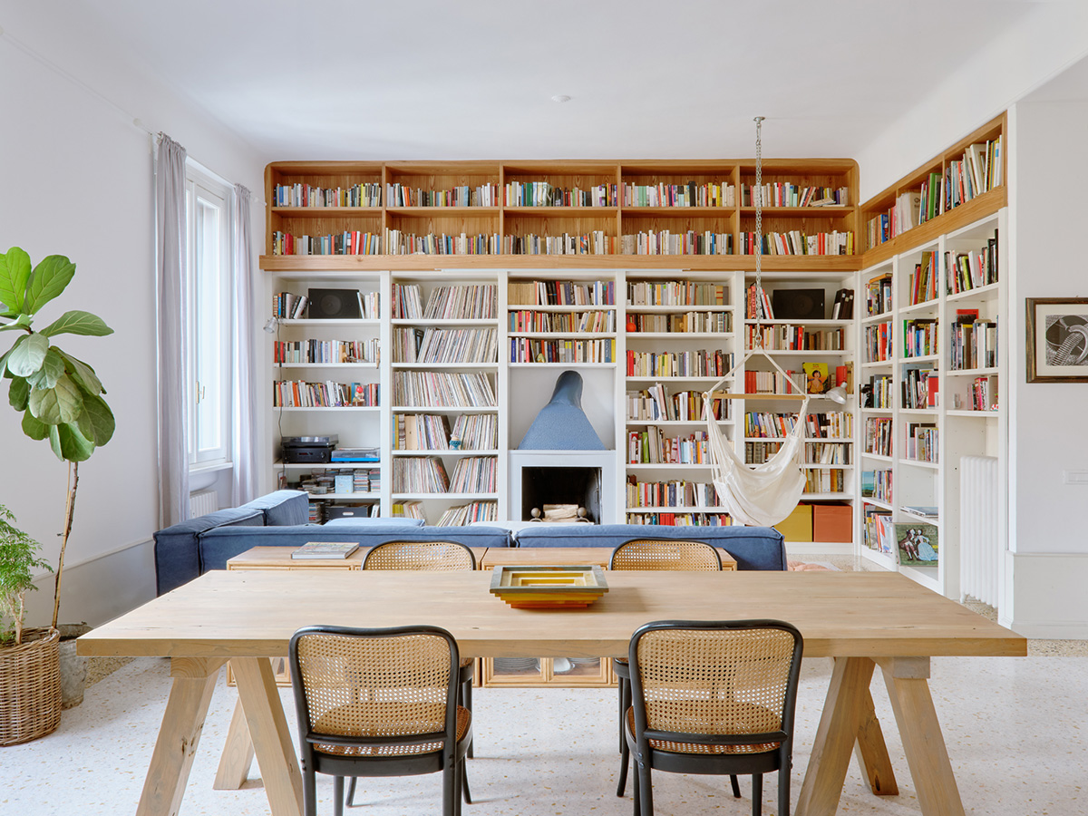 Хозяин этой квартиры в Милане решил обновить интерьеры жилья, в котором он вырос — теперь его собственная семья нуждалась в комфортном и привлекательном пространстве для совместного проживания. Среди главных новшеств — в квартире появилась небольшая комната-офис для работы из дому, а также книжный шкаф на всю стену в гостиной. Кухня также стала ярче и привлекательные благодаря красным фасадам и камне тераццо на рабочей поверхности. Получился очень живой современный интерьер!