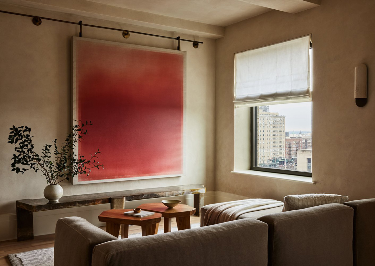 Ваби-саби, средиземноморское влияние, натуральный минимализм — у стиля интерьеров этой модной небольшой квартиры в Нью-Йорке может быть несколько названий. Но если обобщать, то это спокойный и тёплый монохромный дизайн с оштукатуренными стенами, натуральными материалами в отделке и акцентом на само пространство. Вот такой маленький необычный оазис умиротворённости посреди большого мегаполиса!