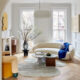 Центром композиции в гостиной становится мягкая мебель. Тёмная или светлая, но точно с дорогой обивкой, она обычно группируется вокруг журнального столика. Расстановка симметрична относительно центра стола и, по возможности, относительно центра помещения.