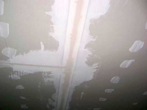 Есть вторая технология — на гипс сначала наклеивают серпянку или бумажную армирующую ленту, затем ее шпаклюют. Так получается быстрее, но недостаток — пустоты, которые остаются под лентой. В этих местах может морщить обои или трескаться шпаклевка, декоративная штукатурка.