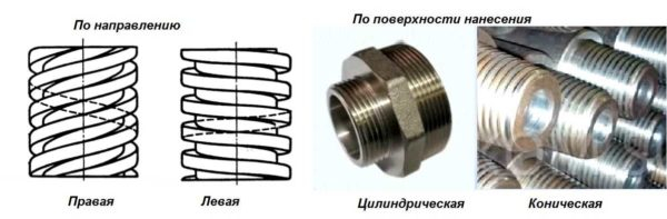Еще стоит знать, что по направлению нанесения витков, резьбы бывают правые и левые, а по поверхности, на которые они наносятся — цилиндрические и конические.