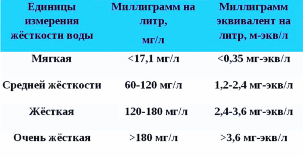 По новому межгосударственному стандарту качество воды характеризуется в градусах жёсткости – °Ж. Где 1°Ж соответствует 1 мг-экв/л или 1 моль/м3 и является постоянной величиной.