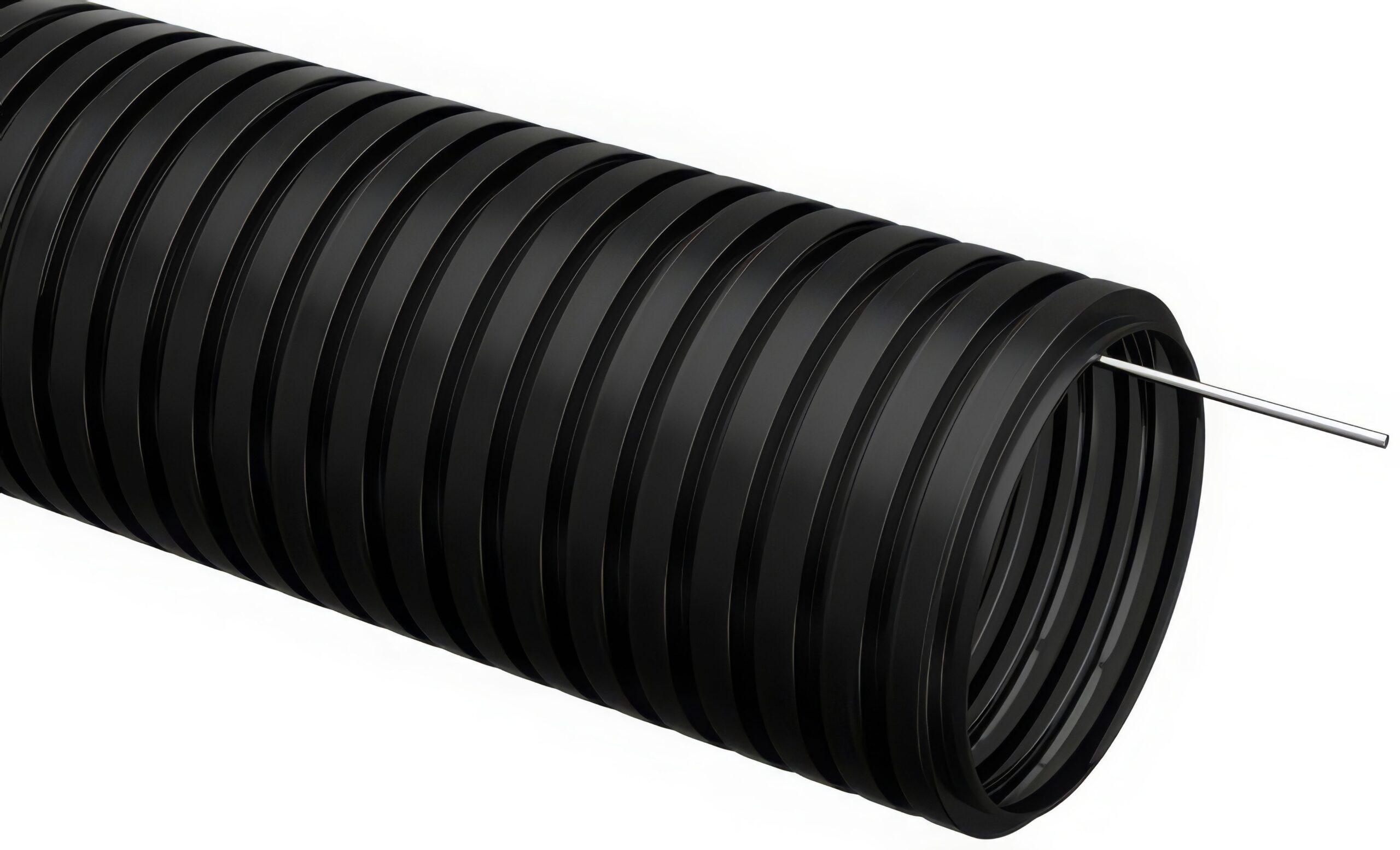 Гофрированная труба из полиэтилена (ПЭ) — это гибкий трубчатый элемент с периодическими складками (гофрами) на поверхности. Эти гофры придают изделию дополнительную прочность и упругость, позволяя ей выдерживать значительные нагрузки и изгибаться под разными углами, не теряя своей функциональности.