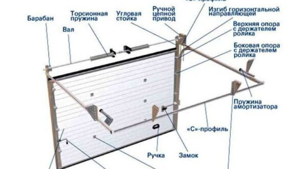 Секционно-подъемные ворота ставят в гаражах, хозблоках, других технических помещениях. Они удобны тем, что при открывании просто поднимаются вверх, не требуя свободного пространства перед полотном. Еще один плюс —