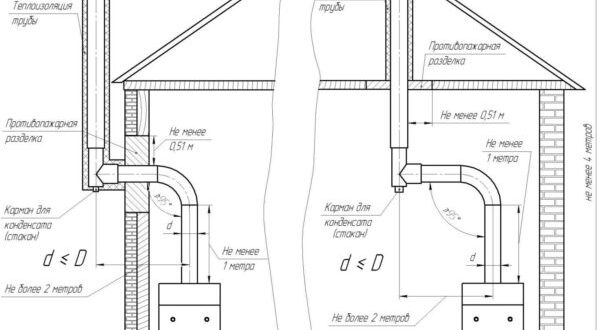 При установке газовых котлов необходимо строго соблюдать нормы. Также строго по нормативам надо монтировать дымоход для газового котла. Хоть температура дымовых газов невысокая и не имеет окраски, вреда