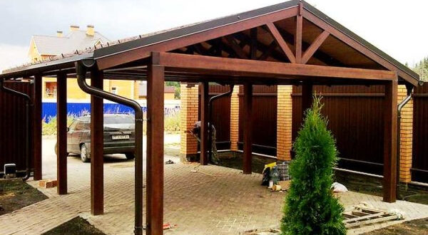 Сразу после постройки дома, а иногда и «до» возникает вопрос с парковкой. Строить капитальный гараж не всегда есть возможность, а вот поставить крышу на столбах — навес —