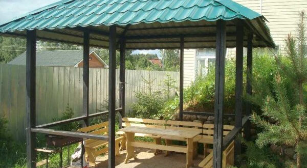 Беседка на даче или во дворе дома — место для чаепития и посиделок в летнее время. В постройках размером чуть больше, может быть установлен мангал. Тогда уж можно