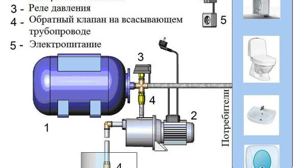 Водоснабжение частного дома чаще всего делают из колодца или скважины. Для автоматической подачи применяют насосы. Тип и производительность насоса выбирают в зависимости от расхода воды и того, на какую высоту
