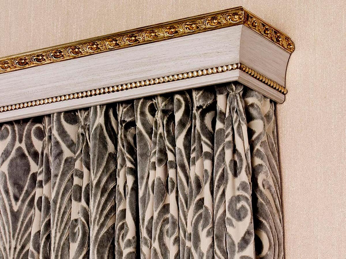 - Высота потолков: Для низких потолков подойдут карнизы, визуально увеличивающие высоту помещения, например, карнизы с вертикальным рисунком.