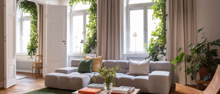 Эта шведская квартира имеет одну интересную особенность, которая выделяет её на фоне типичных скандинавских интерьеров. Дело в том, что в некоторых её комнатах имеются прекрасные арочные окна, украшенные