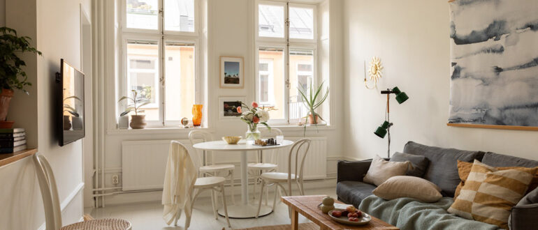 Не будучи слишком ярким или выразительным, интерьер этой небольшой квартиры в Стокгольме вызывает только самые приятные и тёплые эмоции. Здесь сошлись несколько факторов — это и обилие солнечного