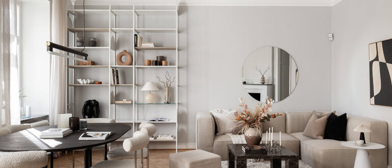 Несмотря на популярность в последнее время теплых натуральных интерьеров, эта квартира в Гетеборге получилась противоположной данному тренду. Её интерьеры оформлены в строгой и прохладной цветовой гамме, состоящей из