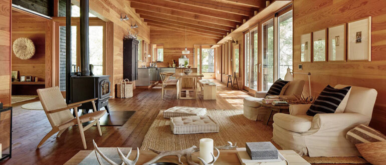 Интерьер этого чудесного дома у озера в провинции Онтарио, Канада, в очередной раз доказывает, что дерево — пожалуй, самый универсальный и уютный натуральный материал в декорировании. Здесь не
