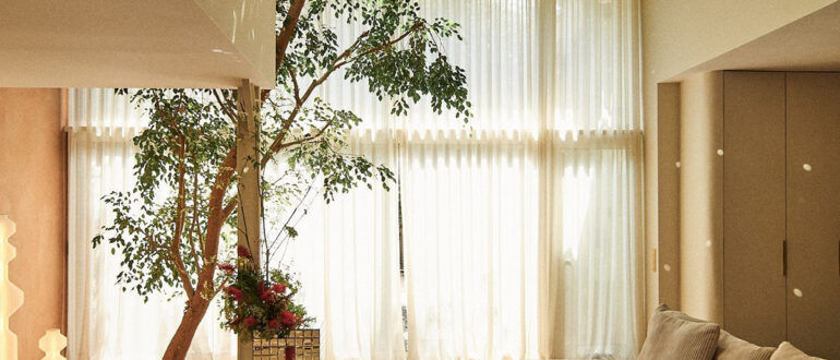 Дизайн этого невероятного дома на окраине Париже построен вокруг живого дерева — для него хозяевам даже пришлось переделывать крышу (она здесь частично стеклянная) и организацию всего пространства гостиной-кухни.