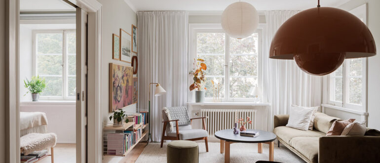 Угловое расположение квартиры означает больше окон в интерьере, а это в свою очередь значит, что больше естественного света попадает внутрь. Эта квартира в Стокгольме с угловой гостиной как