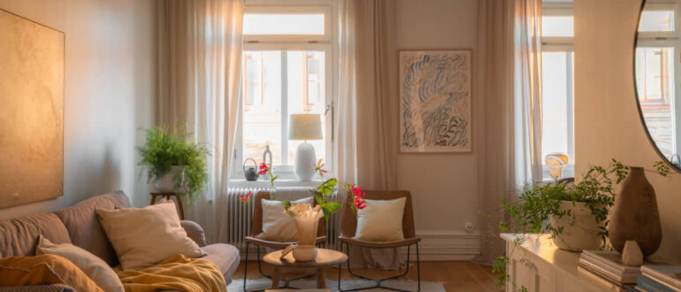 Небольшая площадь, но много мягкости и нежности — этот интерьер в Стокгольме отличается большим количеством текстиля в декоре, который создаёт особую умиротворяющую атмосферу. Шторы, пледы, скатерти, ковры и