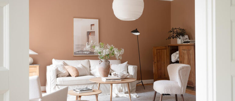 Эта квартира в Гётеборге привлекает в первую очередь своей терракотовой гостиной — интерьер смотрится очень эффектно и интересно, особенно в сочетании со светлой мебелью и текстилей. Из гостиной