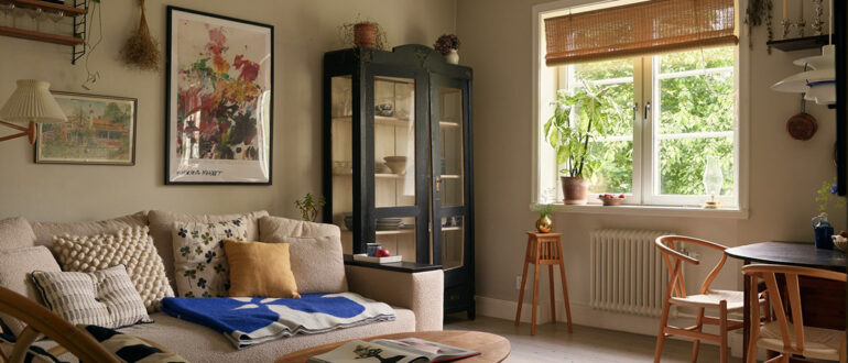 Три больших окна и балкон — при общей площади всего в 39 кв. м эта квартира в Стокгольме выглядит очень светлой и уютной. Необычное угловое расположение обеспечило квартире