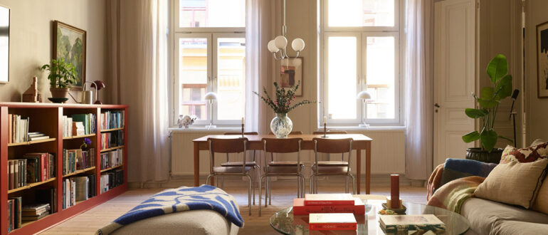 Строгость и элегантность интерьеров этой квартиры в старом доме в Стокгольме дизайнеры решили разбавить с помощью смелого настенного декора. Фотокартины, красочные постеры, ботанические изображения — на стенах в