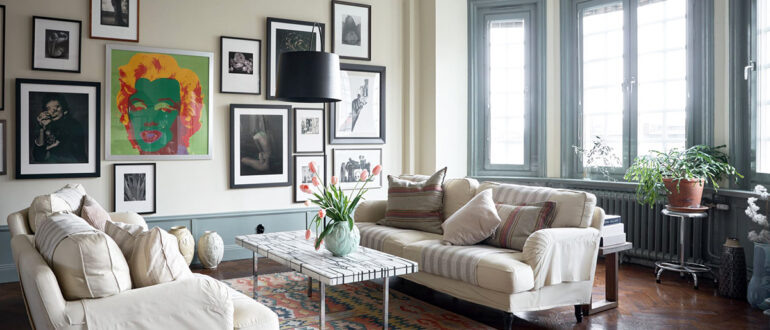 У этой скандинавской квартиры есть парочка интересных фишек, которые выгодно отличают её от типичных скандинавских интерьеров. Первое, что бросается здесь в глаза — стены, усеянные постерами и фотографиями