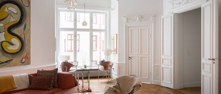 Что в первую очередь бросается в глаза в этой шведской квартире, так это великолепные классические пространства. Огромные комнаты с высокими потолками, изящная лепнина, большие окна, впускающие море естественного