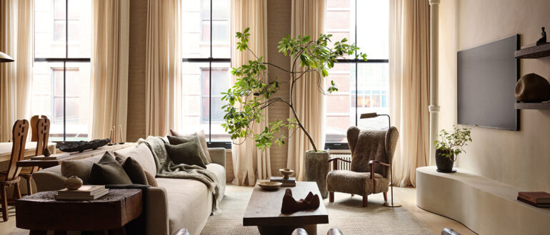 У этого лофта в Нью-Йорке имеется сильный индустриальный характер, но модные натуральные штрихи подарили интерьерам свежее дыхание. В оформлении квартиры преобладают теплые землистые оттенки, в то время как
