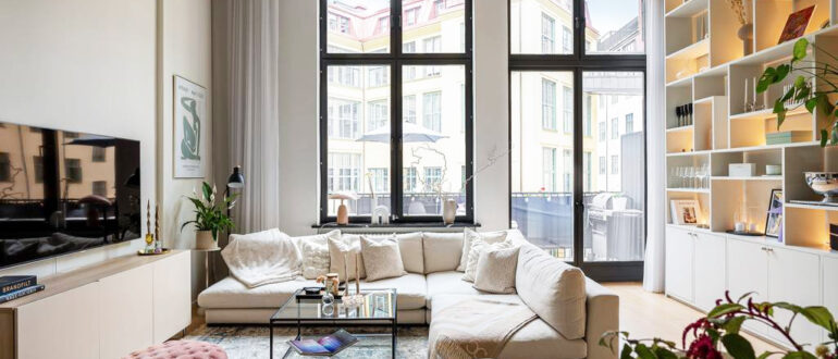 От высоты потолков в некоторых местах в 4.5 метров до изысканных современных предметов интерьера — эта мансарда в Стокгольме является хорошим примером роскошного скандинавского дизайна. Сдержанная светлая цветовая